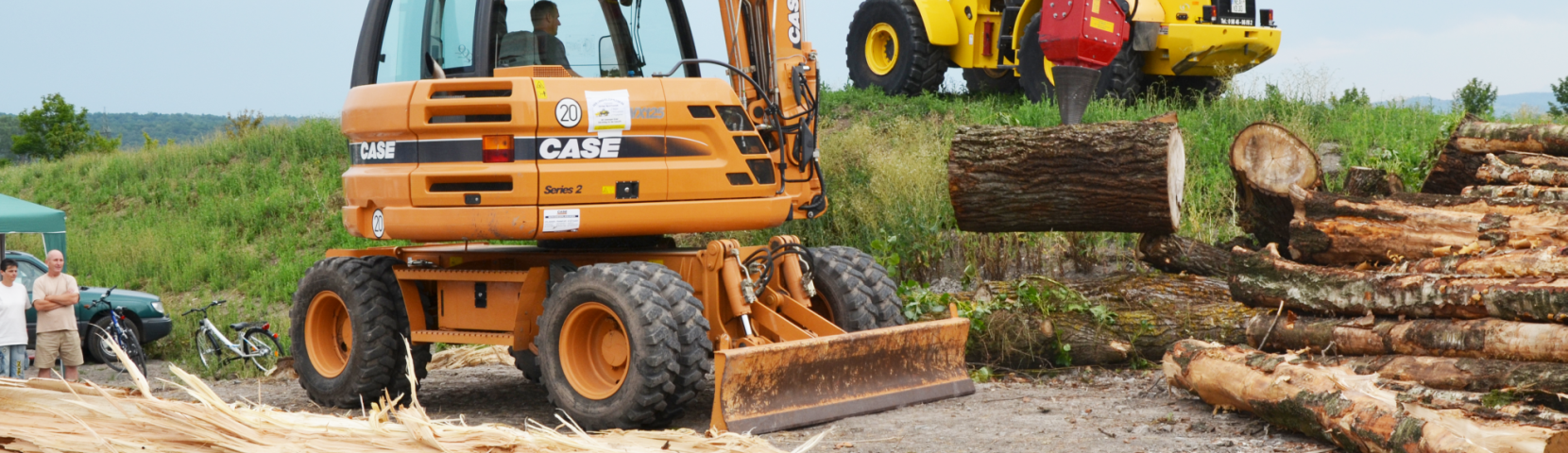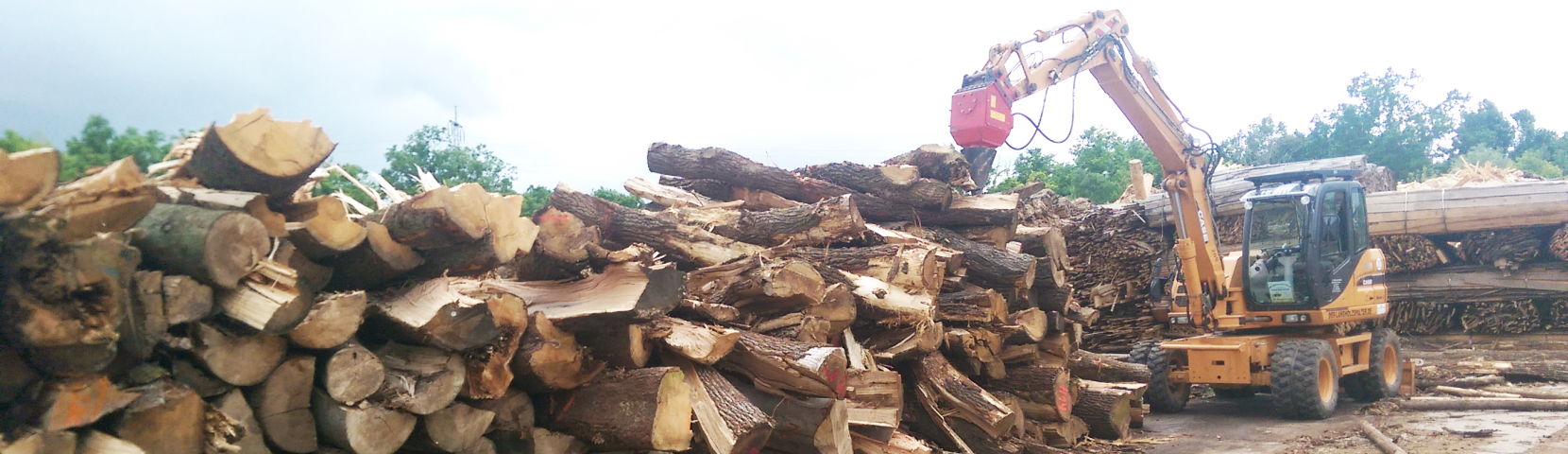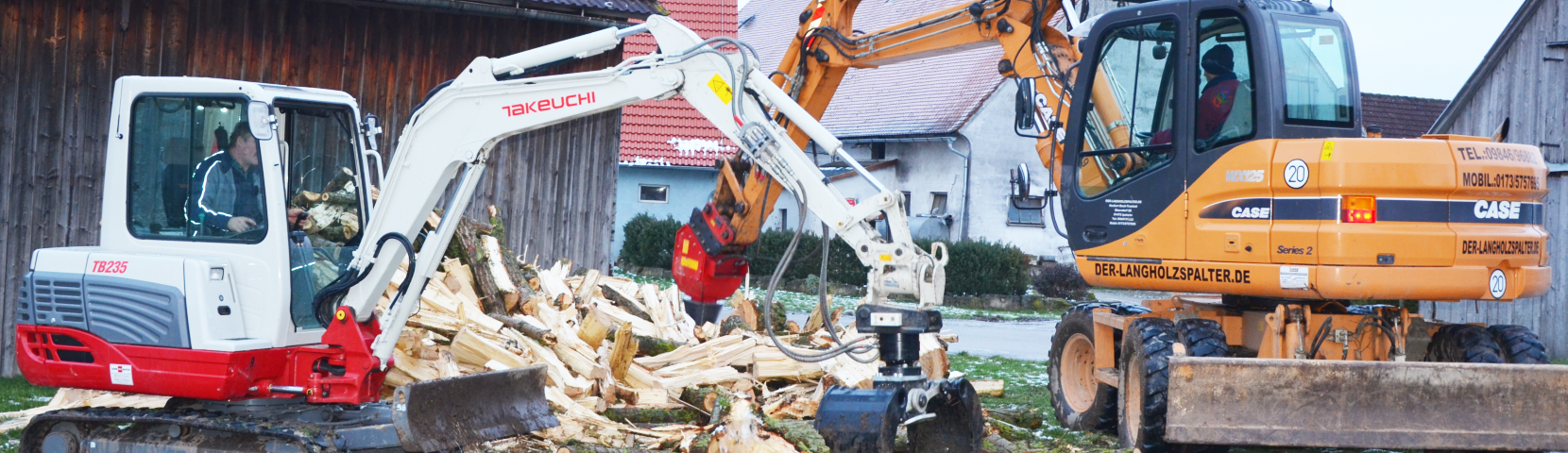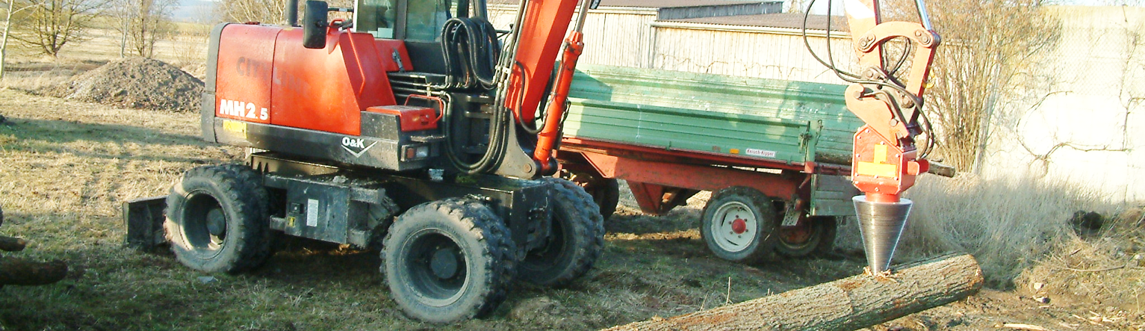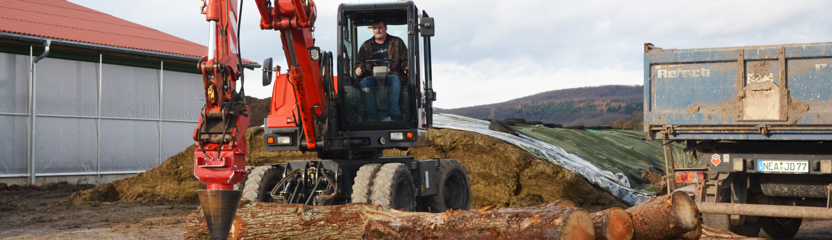 ♦ Holzspalten mit dem Mobilbagger (12, 5 Tonnen) – alle Längen und Stärken